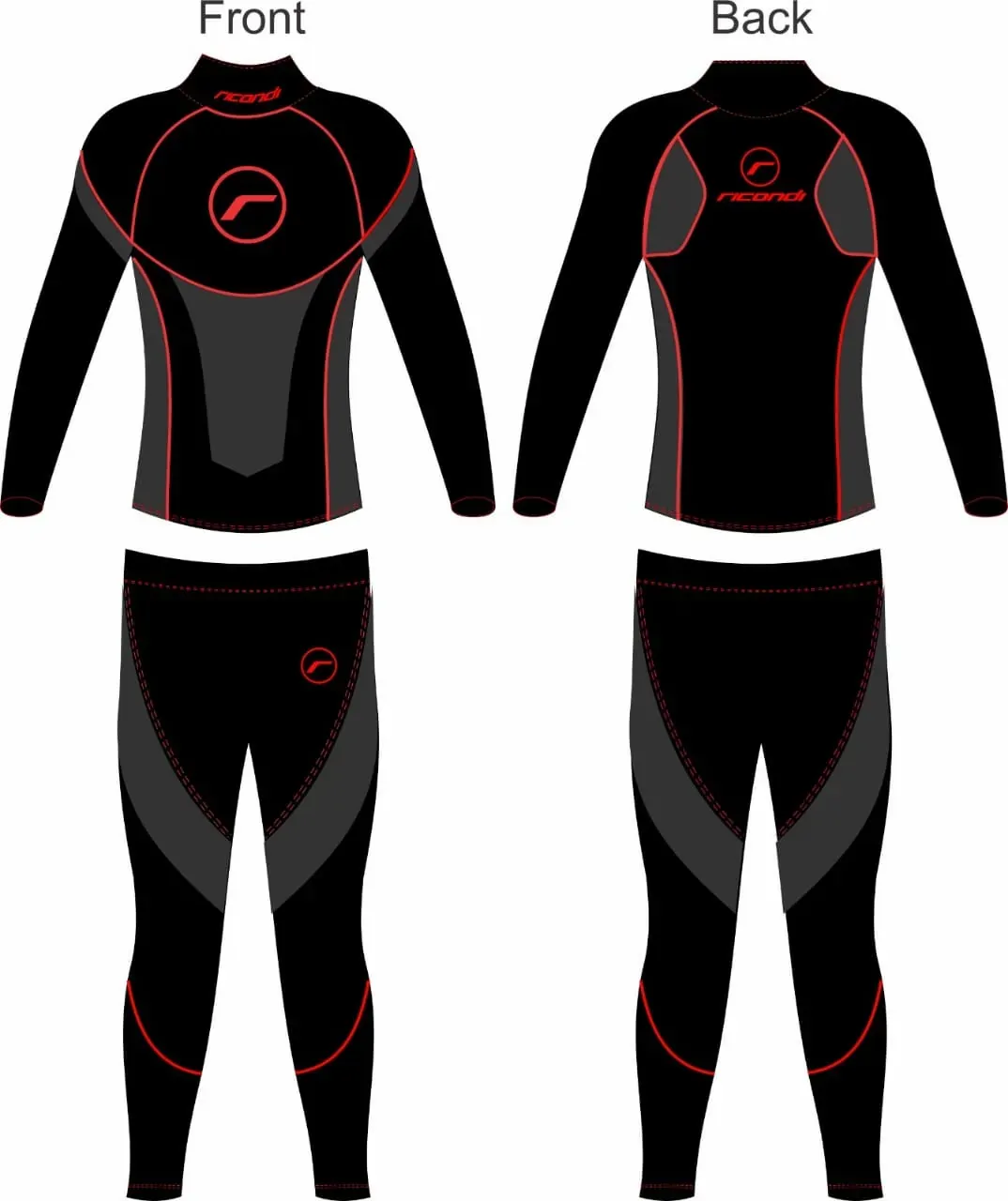 RICONDI COMPCOOL 2 PIECE COMPRESSION SUIT BLACK GREY RED XXS