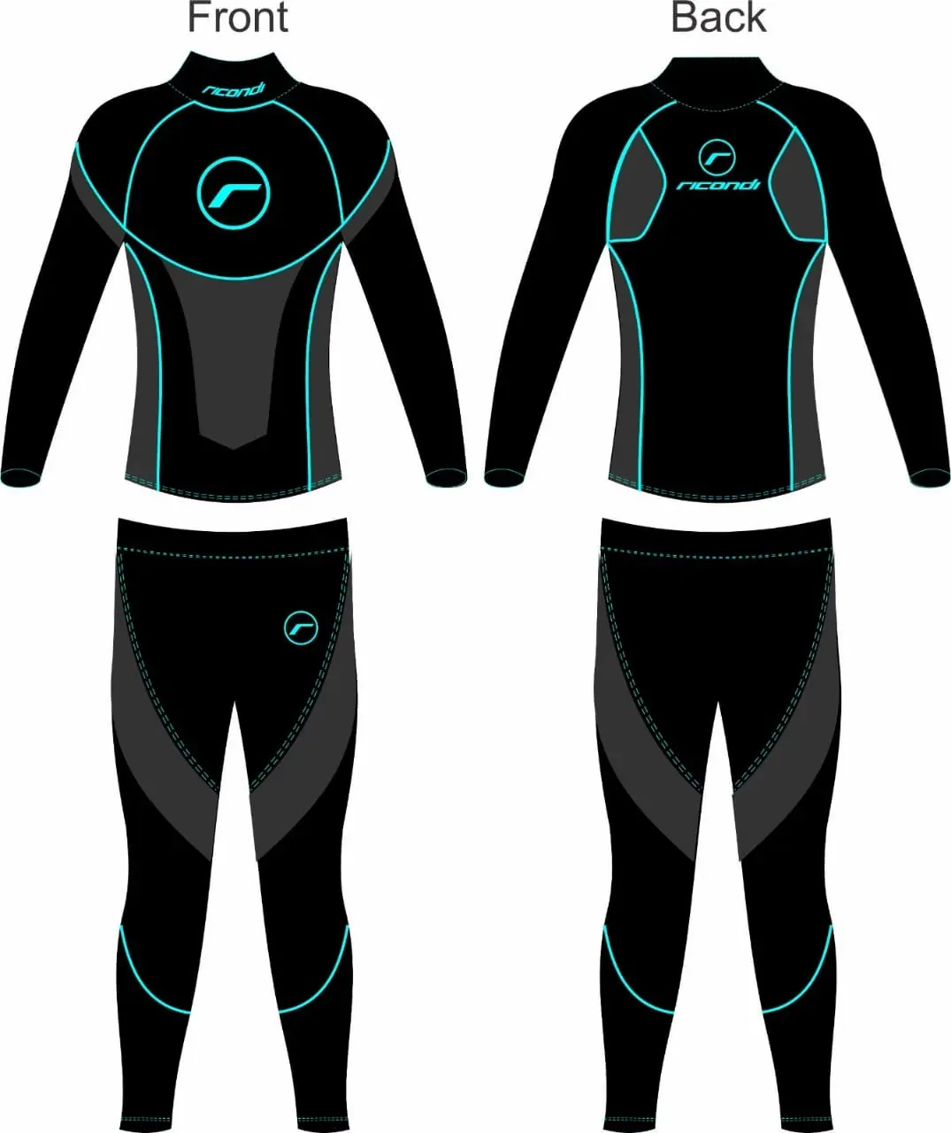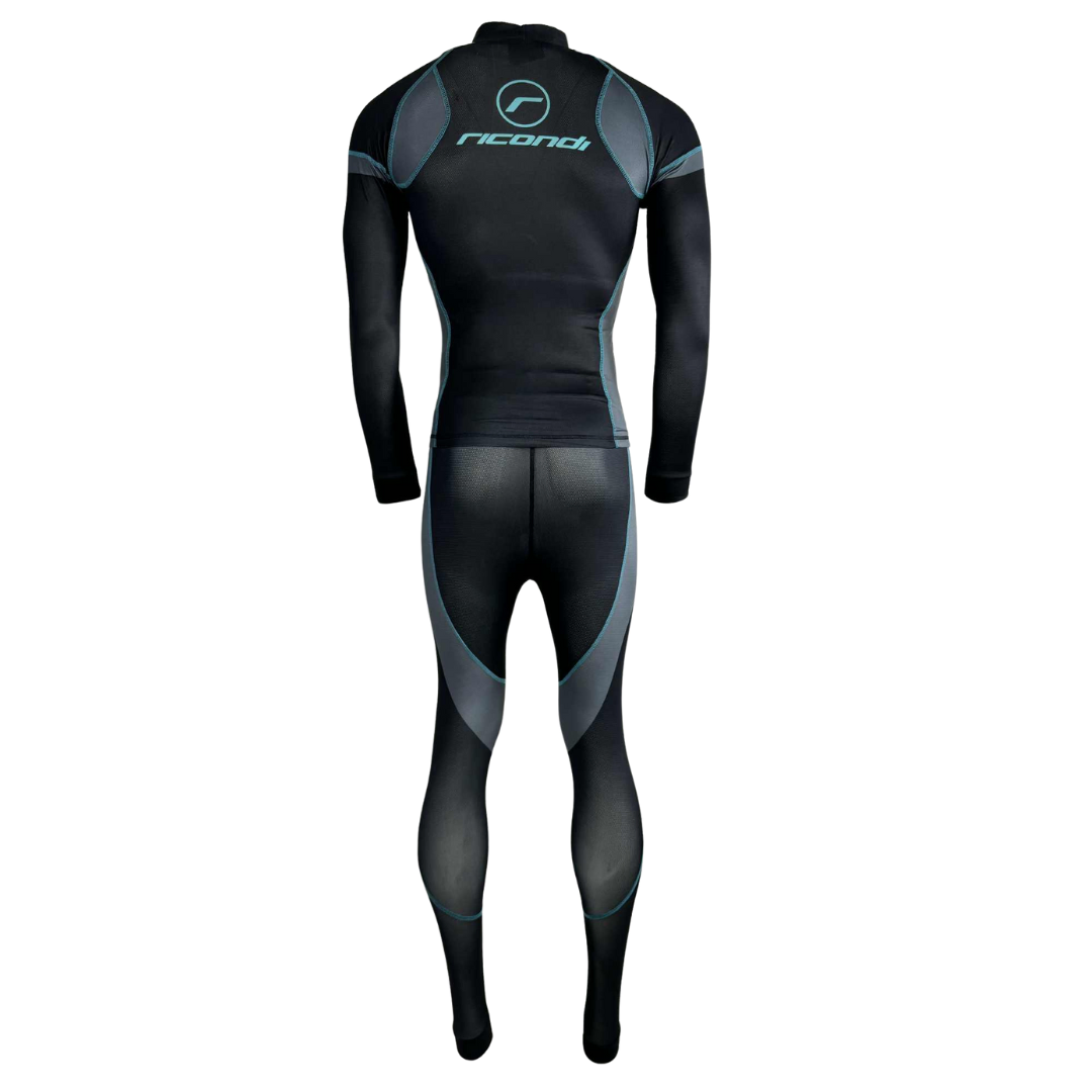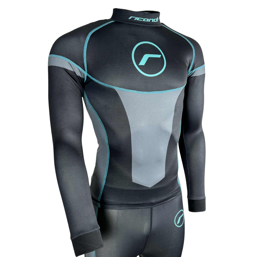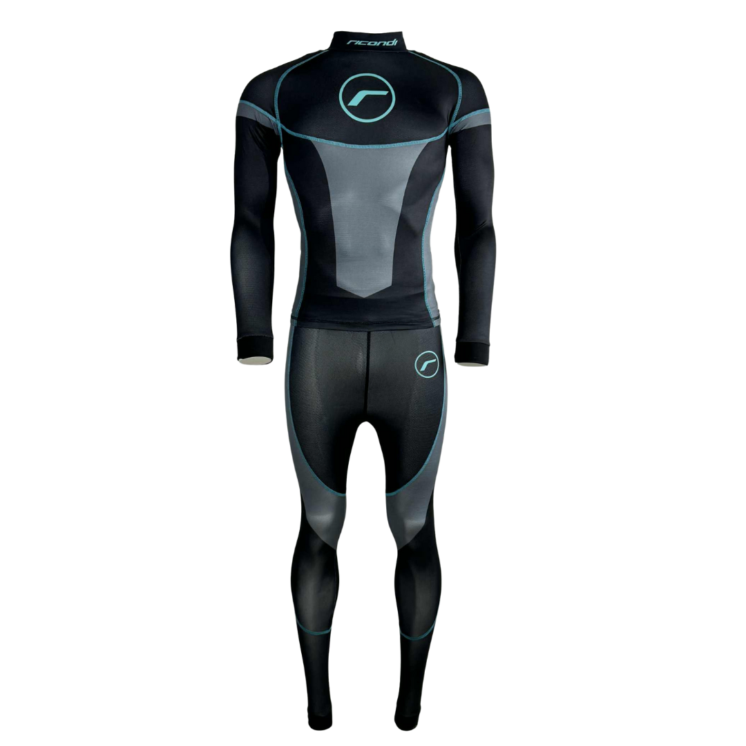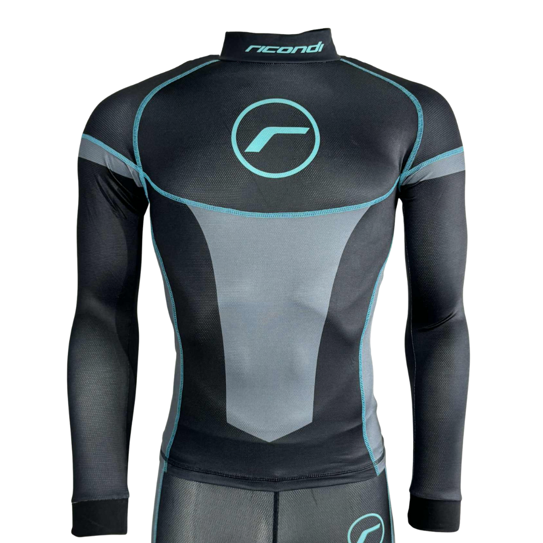 Ricondi CompCool 2 Piece Womens Compression Suit - Black Grey Aqua - Taking motorcycle compression wear and under suits to the next level.