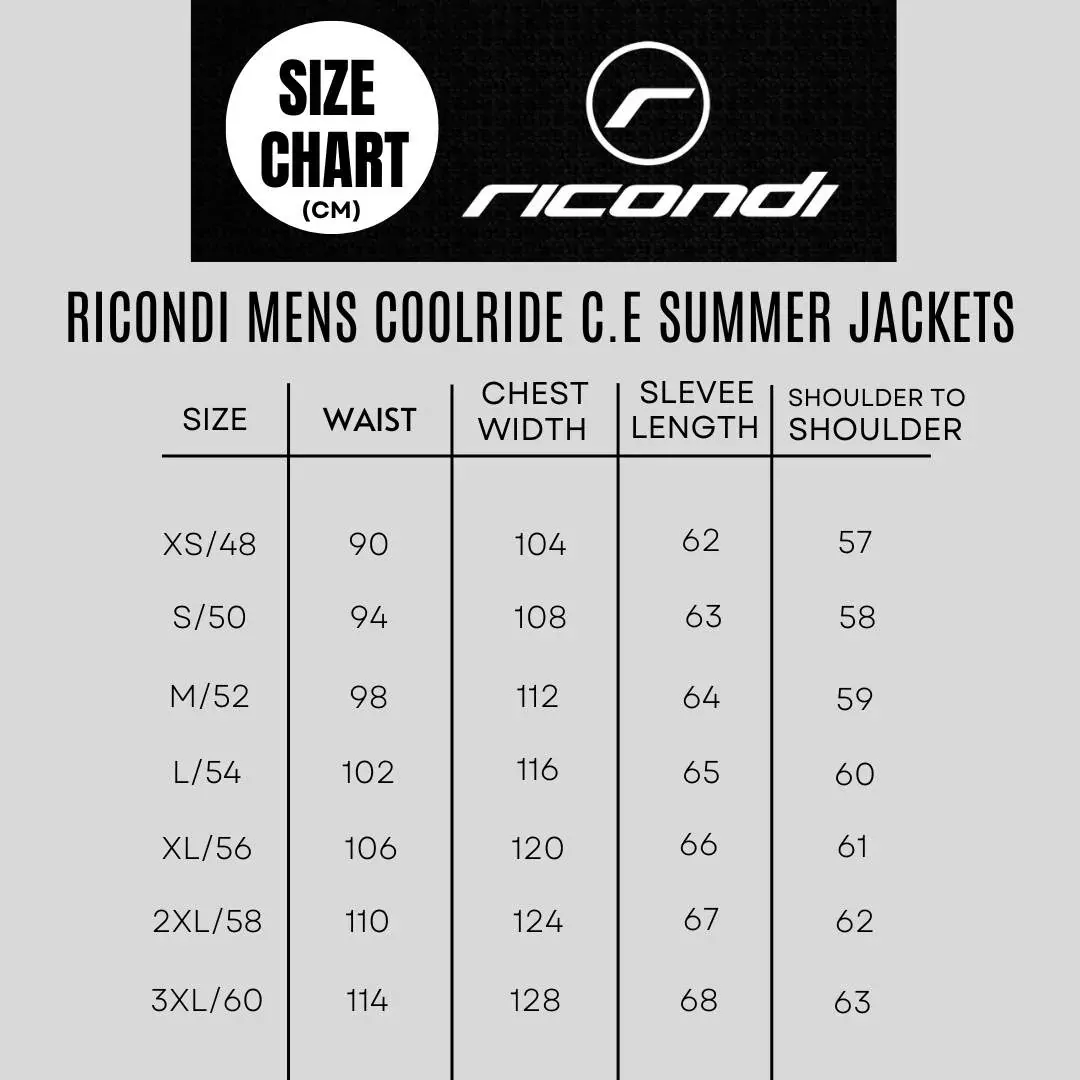 The Coolride Mens Jacket from Ricondi is a light weight riding jacket great for the warmer days on the bike. Light versatile, comfortable, affordable and overall the perfect ventilated textile jacket for hot summer days. Keep cool and grab one of these excellent jackets today. This jacket is also TECH-AIR (Air bag) Compatible. Chat to our expert team in store to get you covered.